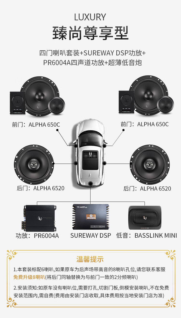 商品名称:燕飞利仕(Infinity)汽车音响改装ALPHA人声两分频同轴喇叭高音头低音炮车载音响套装 新品ALPHA 601CF二分频一套