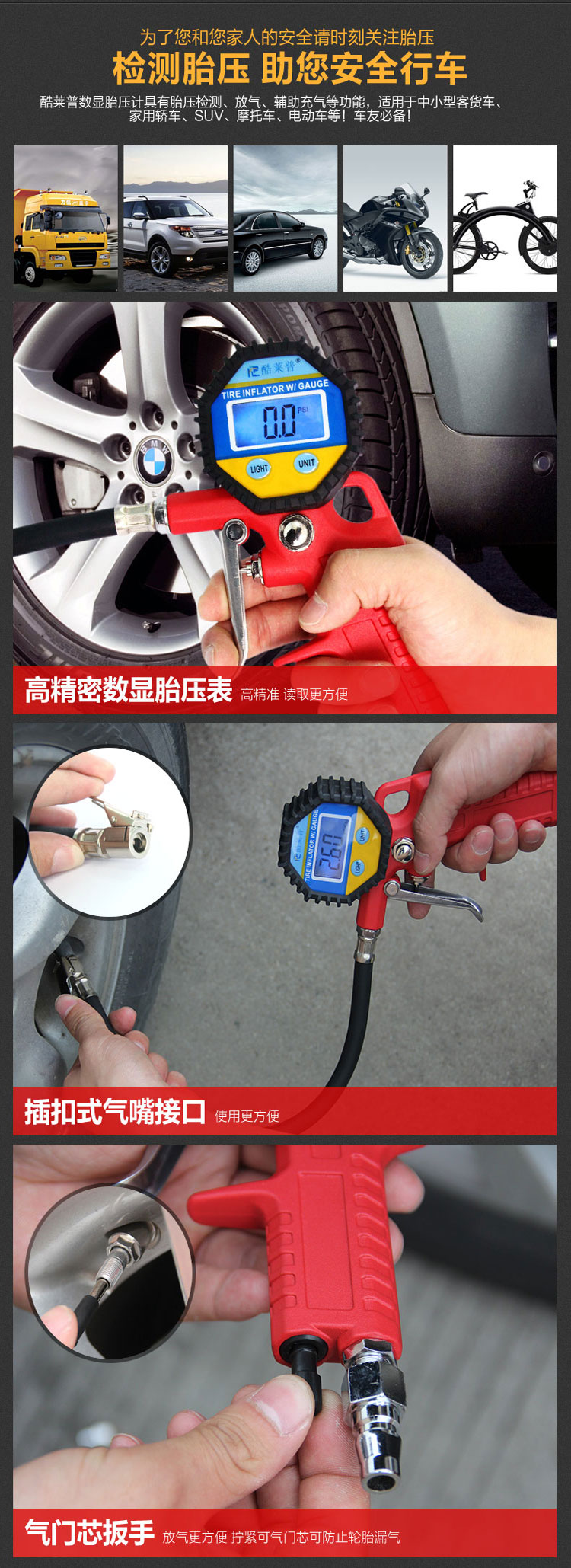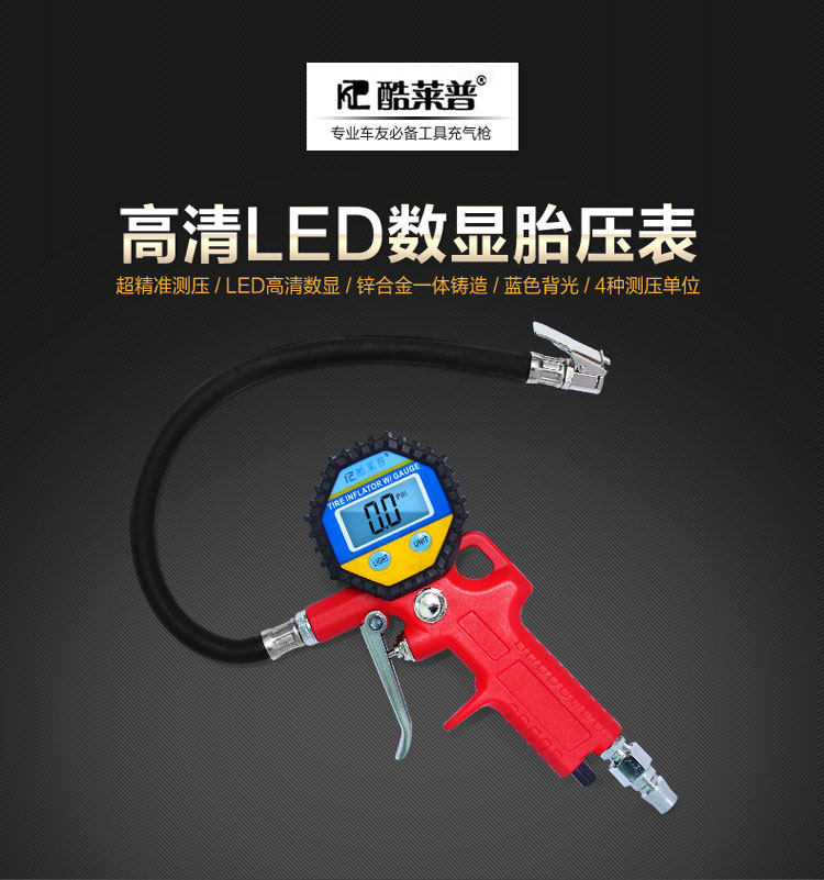 商品名称:酷莱普数显胎压表 汽车气压表胎压计高精度车用充气表 KLP-86002 红黑色
