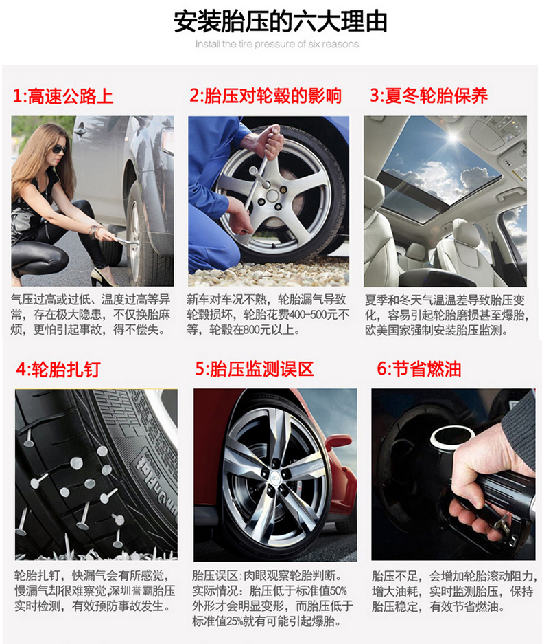 商品名称:胎压监测器无线太阳能高精度汽车轮胎报警器检测仪通用 黑白屏外置胎压