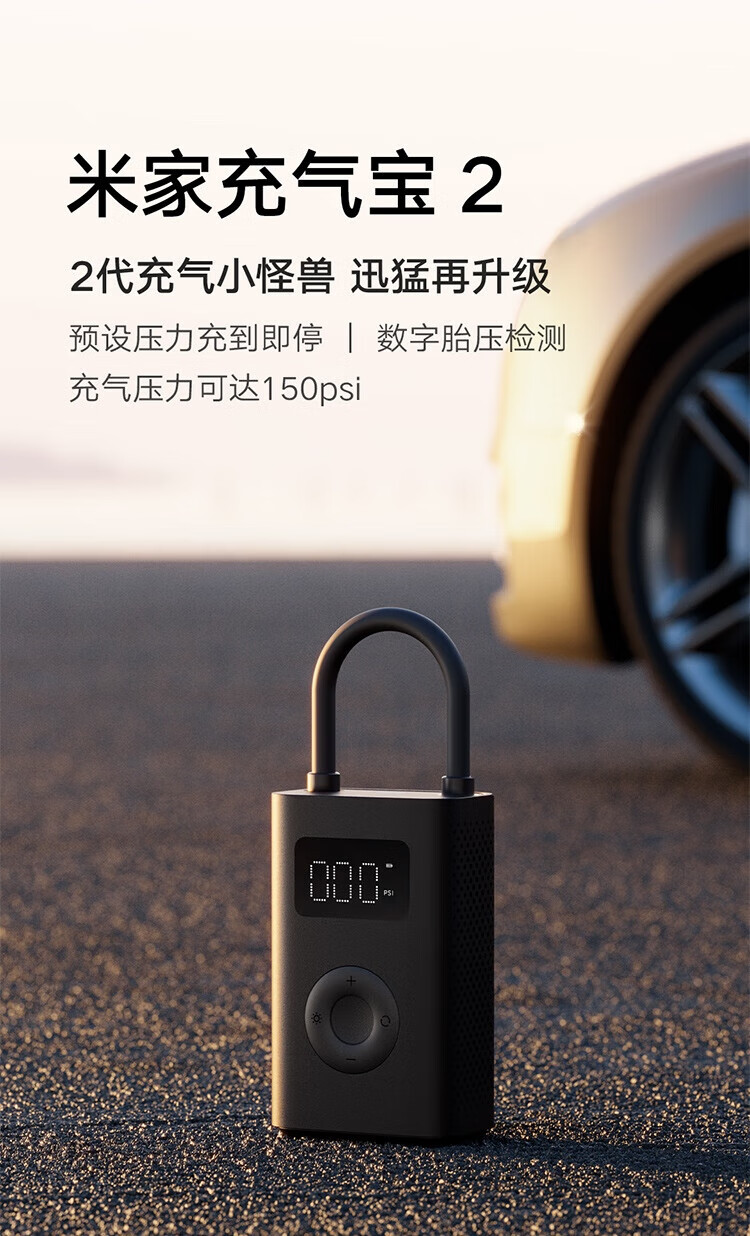 商品名称:小米(MI)米家充气宝2车载电动充气泵胎压检测内置电池自行车篮足球打气筒