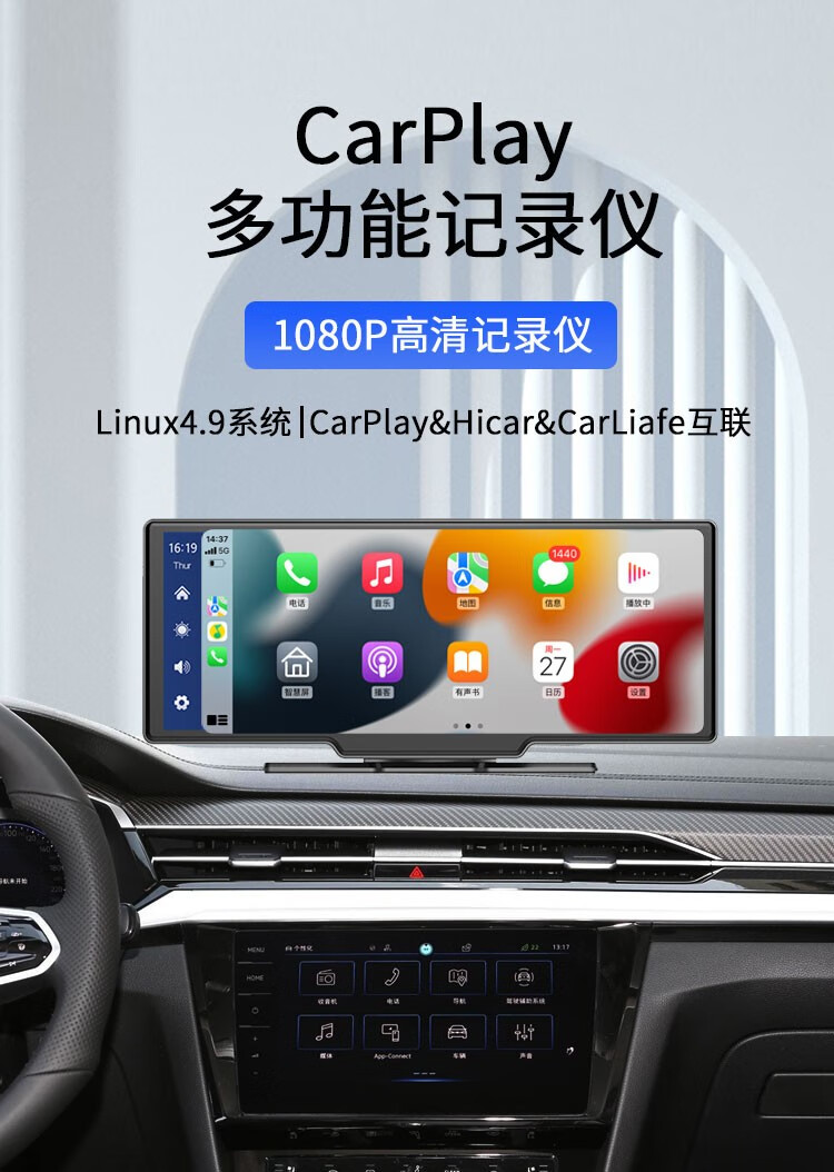 路瑞宝 车载智慧屏无线carplay行车记录仪华为hicar便携式导航不限车型 车载智慧屏+前录+无线CarPlay/HiCar