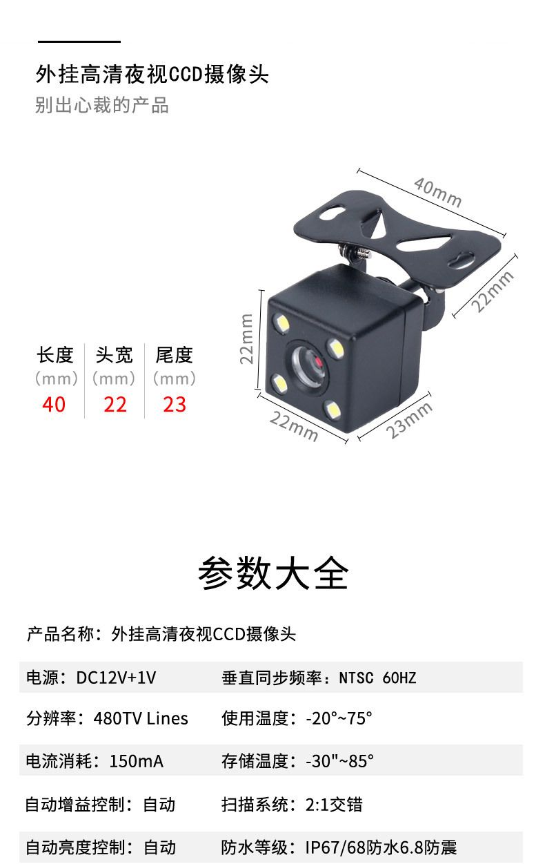 商品名称:DPOYLBJ通用四灯汽车高清倒车摄像头CCD后影像车载大屏夜视广角轿车导航 高清四灯倒车影像(不带线)